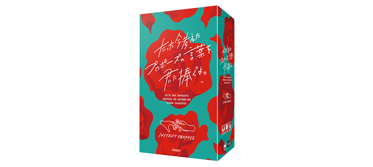 「たった今考えたプロポーズの言葉を君に捧ぐよ。」は、複数の子プレイヤーがそれぞれカードを組み合わせて即興でプロポーズの言葉を作り出し、その中から親プレイヤーが最も気に入った1つを選ぶというゲームです。
