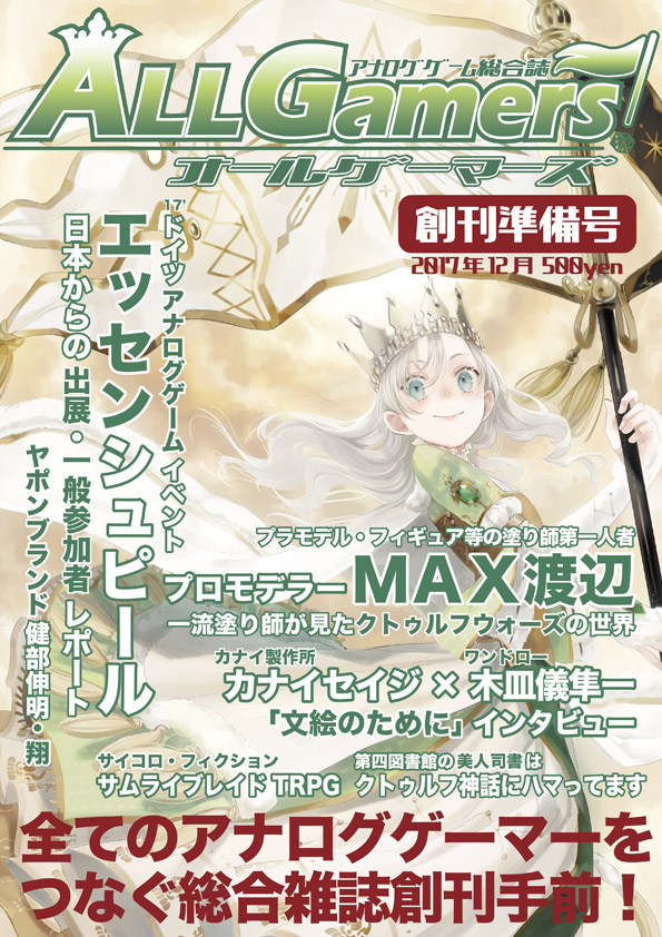 渡辺 高額な商品にも関わらず大好評で品薄が続いていると聞いて。興味が湧いて見せてもらったらとにかく箱がデカくて重い(笑)しかもコマの造型も超気合い入っていて、ボリュームも凄い。このゲーム、ミニチュアが人気の要因の1つなんだなぁと。で、成形色が原色バリバリで目が痛い(笑)黄色は黄色で赤は赤!って。ゲームのコマとしての機能は万全なのだけれど、クトルゥフの世界観、イラストから思い描くイメージとこのキッチュな色使いは真逆というか、もったいないなぁと感じたんです。そこでアークライトの福本シャチョー【脚注②】に「こういったゲームのコマがいい感じで塗られていたらゲーマーさん的には嬉しいんですか?」と伺ってみたんです。そうしたら「みんな喜ぶ、絶対盛り上がります」って。だから「だったら試しに塗ってみましょう」と軽い気持ちで引き受けたんです。作業に入ったら数が多くてボリュームも凄くて正直大汗かきましたが(笑)